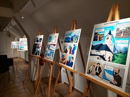 Posebej se je za promocijo stripa zavzela Knjižnica Medvode. Tam smo imeli v torek, 13. maja 2025, predstavitev stripa o Aljažu, direktor mag. Igor Podbrežnik[6] pa je napisal nekaj misli o stripu na splošno v medvoški knjižnici pa tudi o stripu o Aljažu.