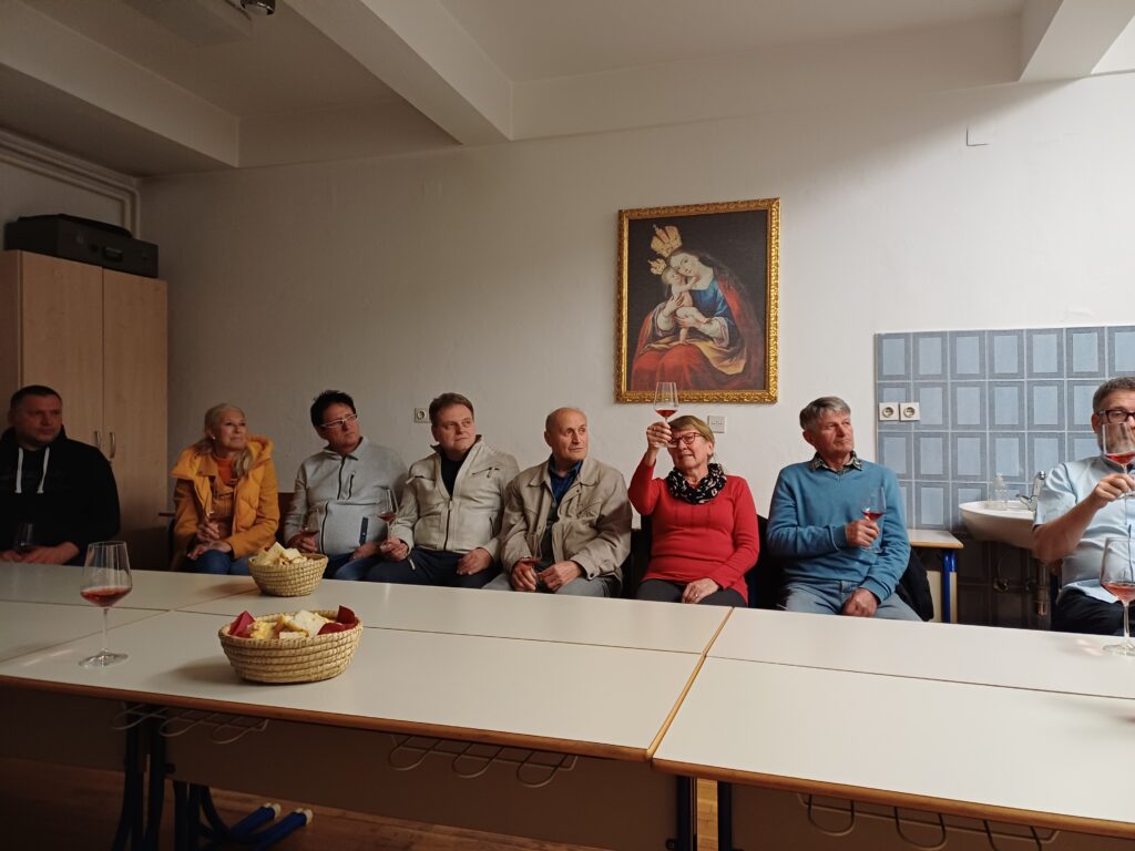 V torek, 11. novembra, je godoval sv. Martin in po večerni sv. maši v Smledniku je bil v župnišču Martinov večer. Gosta sta bila Lojze Kerin in njegova žena, ki sta lastnika Hiše modre frankinje. Za dogodek se je prijavilo okoli 20 ljudi. Spoznavali smo delo vinogradnika, vinarja in kletarja. Poizkusili smo tudi 5 sort vin (cviček, belo vino, modro frankinjo, belo frankinjo ter portovca) in dolenjske pogače z mesom. Bil je en lep večer.