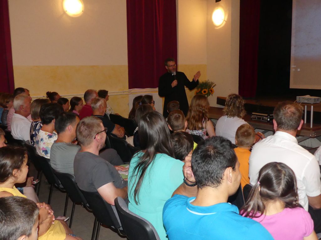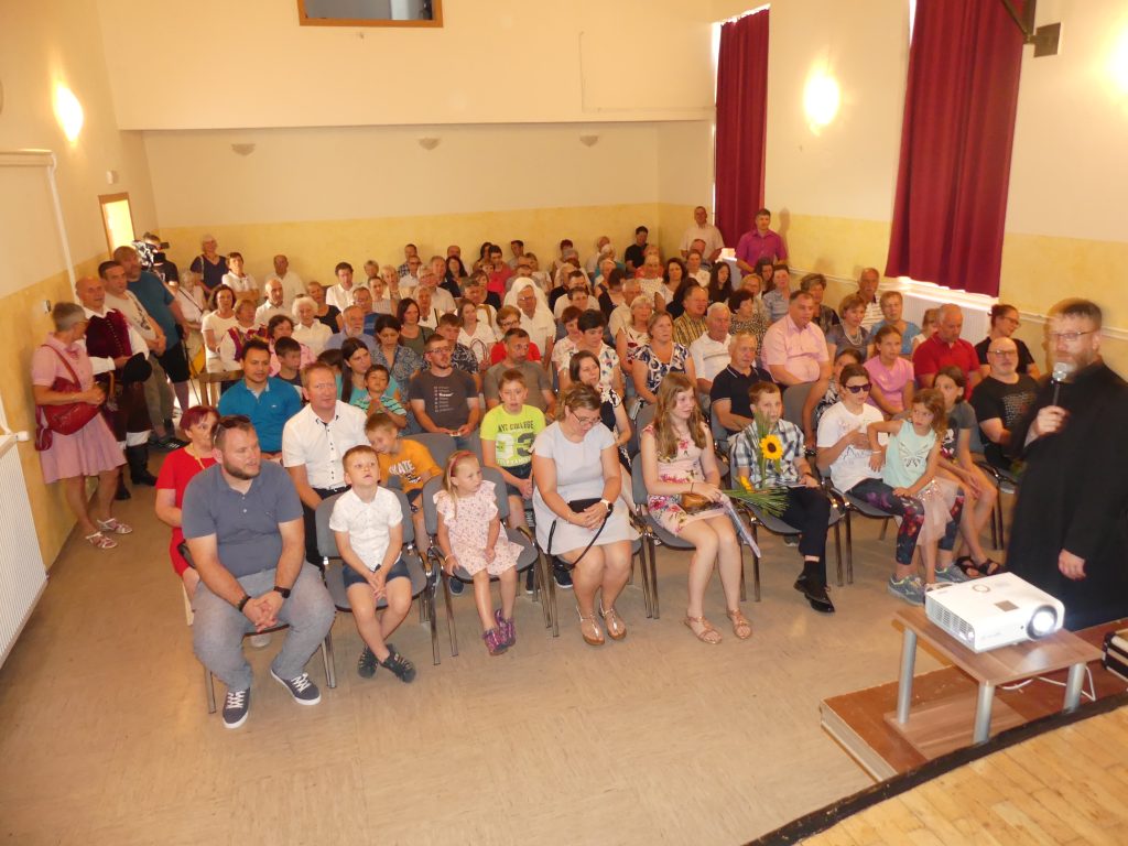 Radovednost in odnos do svetega zavetnika in župnije sta privabila farane, da so napolnili dvorano Kulturnega doma. Najprej so poslušali nekaj o tem, kako je nastajal film, potem si pa film ogledali. Gradivo za film je župnik dobil v publikacijah o Smledniku, ki so izšle v zadnjih letih, iz njih je tudi slikovno gradivo, po katerem je delal oblikovalec. Aplavz na koncu je povedal veliko, še več pa besede navdušenja na trgu pred Kulturnim domom oz. pod cerkvijo. Kar dolgo smo se družili ob dobri domači hrani (kranjske klobase in praženec, po domače šmorn) in pijači, manjkal ni niti desert – pod senčniki seveda.
